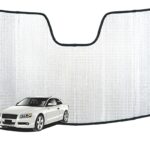 Our custom sun shades have a triple laminate construction with a foam core centre that acts as an insulator, a reflective layer on the outside, soft felt backing on the inner side and are finished with a stylish black binding. The unique internal foam core provides superior insulation as well as preventing the sun shade from falling when in use. Our custom sun shades also retain its shape and rigidity after use. No more flimsy, wrinkled looking sun shades.