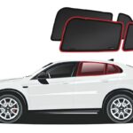 Note: Our custom sun shades block out a significant amount of light and UV rays that enter from the front windscreen, however due to the angle of the front windscreen and additional sensors or different mirror shapes/sizes available for different models, there may be slight gaps around your rear-view mirror or sides to allow the sun shade to fit.