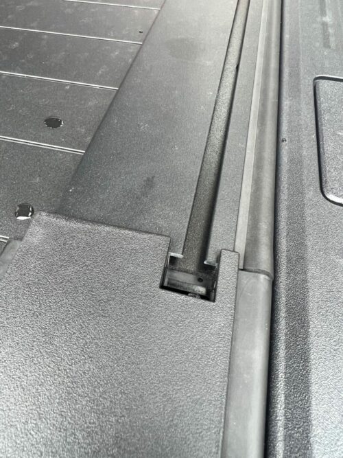 63mm Rear Removable Trade Rack to suit 2022 Next Gen Rapter with factory fittedĀ Roller Shutter. Fixes to the roller shutter existing tracks with bolts and nuts. (centre to centre distance of tracks on shutter is 1365mm)