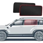 Note: Our custom sun shades block out a significant amount of light and UV rays that enter from the front windscreen, however due to the angle of the front windscreen and additional sensors or different mirror shapes/sizes available for different models, there may be slight gaps around your rear-view mirror or sides to allow the sun shade to fit.