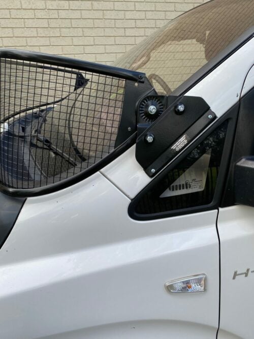 Made from galvanised mesh, alloy framing and galvanised steel end clips that attach to the vehicle. Typically fitted with self tapping screws to side pillar of vehicle.