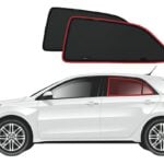 Note: Our custom sun shades block out a significant amount of light and UV rays that enter from the front windscreen, however due to the angle of the front windscreen and additional sensors or different mirror shapes/sizes available for different models, there may be slight gaps around your rear-view mirror or sides to allow the sun shade to fit.