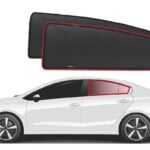 Note: Our custom sun shades block out a significant amount of light and UV rays that enter from the front windscreen, however due to the angle of the front windscreen and additional sensors or different mirror shapes/sizes available for different models, there may be slight gaps around your rear-view mirror or sides to allow the sun shade to fit.