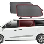 Note: Our custom sun shades block out a significant amount of light and UV rays that enter from the front windscreen, however due to the angle of the front windscreen and additional sensors or different mirror shapes/sizes available for different models, there may be slight gaps around your rear-view mirror or sides to allow the sun shade to fit.