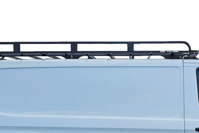The Commercial-Max offers a cost effective, strong and flexible solution and is manufactured using 22 mm square section galvabond steel tubing with rust protection and then powder coated in satin black. Galvabond is a light zinc coat 2-3 microns . We have a standard version available for your van or we can custom build to your requirements. It is available in basket, open ends or Flat Deck (platform) style and some customisation is available such as adding extra height to the sides, installing a mesh floor or adding anchor points or accessories for carrying equipment or tools.