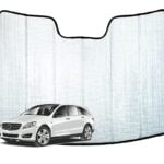 Our custom sun shades have a triple laminate construction with a foam core centre that acts as an insulator, a reflective layer on the outside, soft felt backing on the inner side and are finished with a stylish black binding. The unique internal foam core provides superior insulation as well as preventing the sun shade from falling when in use. Our custom sun shades also retain its shape and rigidity after use. No more flimsy, wrinkled looking sun shades.
