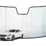 Our custom sun shades have a triple laminate construction with a foam core centre that acts as an insulator, a reflective layer on the outside, soft felt backing on the inner side and are finished with a stylish black binding. The unique internal foam core provides superior insulation as well as preventing the sun shade from falling when in use. Our custom sun shades also retain its shape and rigidity after use. No more flimsy, wrinkled looking sun shades.