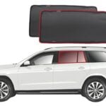 Note: Our custom sun shades block out a significant amount of light and UV rays that enter from the front windscreen, however due to the angle of the front windscreen and additional sensors or different mirror shapes/sizes available for different models, there may be slight gaps around your rear-view mirror or sides to allow the sun shade to fit.
