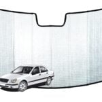 Our custom sun shades have a triple laminate construction with a foam core centre that acts as an insulator, a reflective layer on the outside, soft felt backing on the inner side and are finished with a stylish black binding. The unique internal foam core provides superior insulation as well as preventing the sun shade from falling when in use. Our custom sun shades also retain its shape and rigidity after use. No more flimsy, wrinkled looking sun shades.