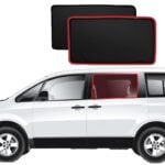 Note: Our custom sun shades block out a significant amount of light and UV rays that enter from the front windscreen, however due to the angle of the front windscreen and additional sensors or different mirror shapes/sizes available for different models, there may be slight gaps around your rear-view mirror or sides to allow the sun shade to fit.