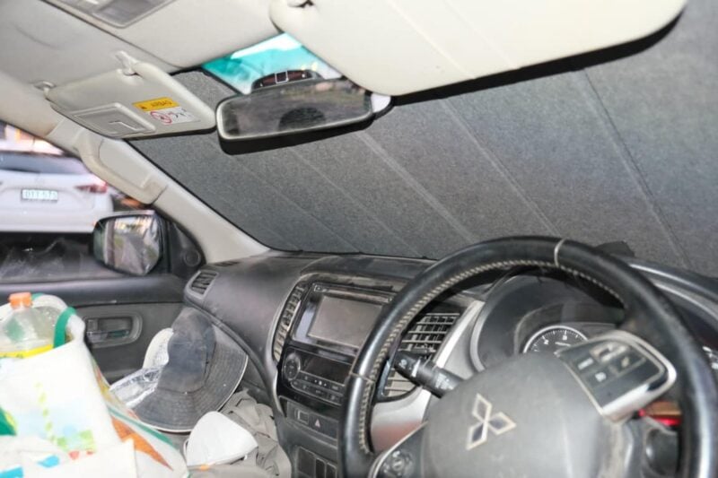 Note: Our custom sun shades block out a significant amount of light and UV rays that enter from the front windscreen, however due to the angle of the front windscreen and additional sensors or different mirror shapes/sizes available for different models, there may be slight gaps around your rear-view mirror or sides to allow the sun shade to fit.