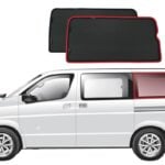 Note: Our custom sun shades block out a significant amount of light and UV rays that enter from the front windscreen, however due to the angle of the front windscreen and additional sensors or different mirror shapes/sizes available for different models, there may be slight gaps around your rear-view mirror or sides to allow the sun shade to fit.