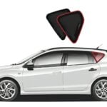 Note: Our custom sun shades block out a significant amount of light and UV rays that enter from the front windscreen, however due to the angle of the front windscreen and additional sensors or different mirror shapes/sizes available for different models, there may be slight gaps around your rear-view mirror or sides to allow the sun shade to fit.