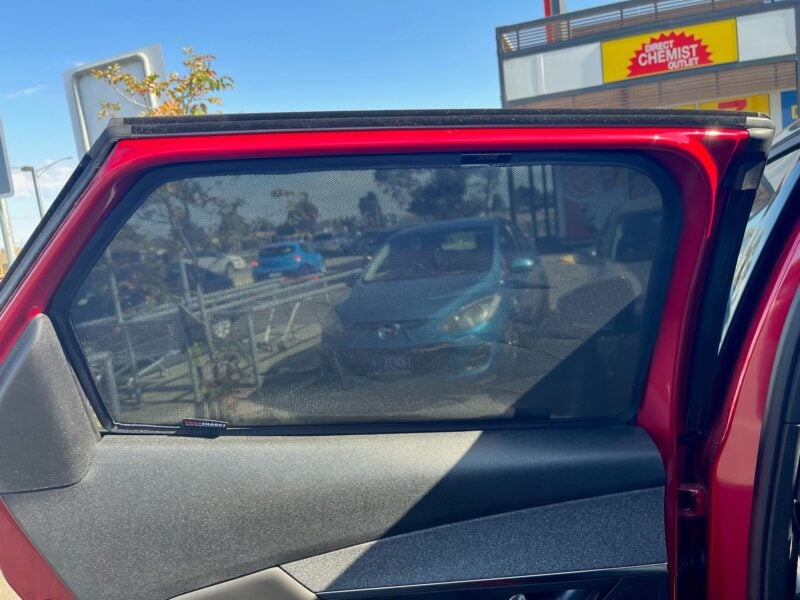 A set of two (2) magnetic car sunshades for the rear passenger windows (left and right doors).