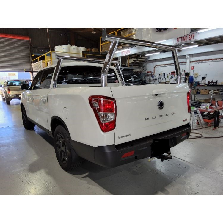 Ssangyong Musso 76mm Polished front fixed/rear removable Trade Rack set