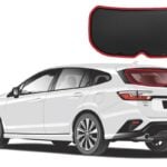 Note: Our custom sun shades block out a significant amount of light and UV rays that enter from the front windscreen, however due to the angle of the front windscreen and additional sensors or different mirror shapes/sizes available for different models, there may be slight gaps around your rear-view mirror or sides to allow the sun shade to fit.