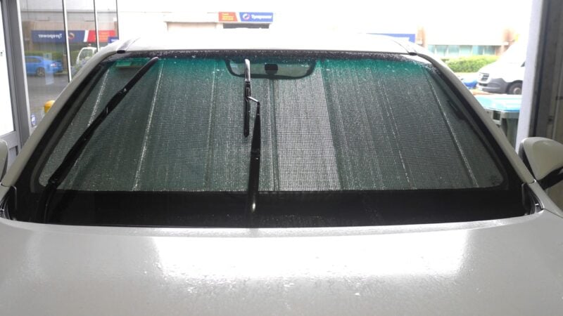 Note: Our custom sun shades block out a significant amount of light and UV rays that enter from the front windscreen, however due to the angle of the front windscreen and additional sensors or different mirror shapes/sizes available for different models, there may be slight gaps around your rear-view mirror or sides to allow the sun shade to fit.