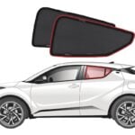 Note: Our custom sun shades block out a significant amount of light and UV rays that enter from the front windscreen, however due to the angle of the front windscreen and additional sensors or different mirror shapes/sizes available for different models, there may be slight gaps around your rear-view mirror or sides to allow the sun shade to fit.
