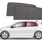 Note: Our custom sun shades block out a significant amount of light and UV rays that enter from the front windscreen, however due to the angle of the front windscreen and additional sensors or different mirror shapes/sizes available for different models, there may be slight gaps around your rear-view mirror or sides to allow the sun shade to fit.