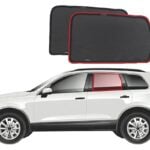 Note: Our custom sun shades block out a significant amount of light and UV rays that enter from the front windscreen, however due to the angle of the front windscreen and additional sensors or different mirror shapes/sizes available for different models, there may be slight gaps around your rear-view mirror or sides to allow the sun shade to fit.
