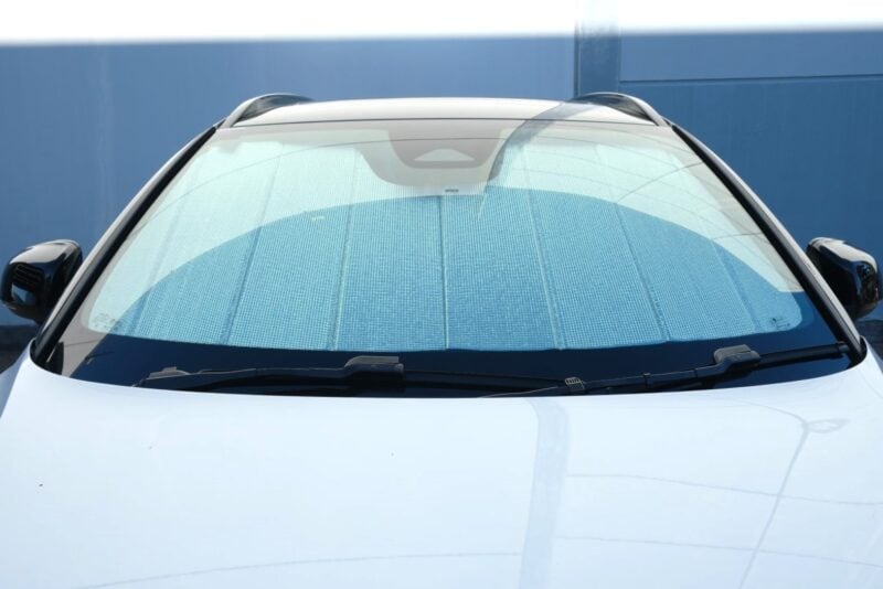 Note: Our custom sun shades block out a significant amount of light and UV rays that enter from the front windscreen, however due to the angle of the front windscreen and additional sensors or different mirror shapes/sizes available for different models, there may be slight gaps around your rear-view mirror or sides to allow the sun shade to fit.