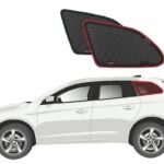 Note: Our custom sun shades block out a significant amount of light and UV rays that enter from the front windscreen, however due to the angle of the front windscreen and additional sensors or different mirror shapes/sizes available for different models, there may be slight gaps around your rear-view mirror or sides to allow the sun shade to fit.