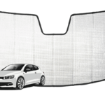 Our custom sun shades have a triple laminate construction with a foam core centre that acts as an insulator, a reflective layer on the outside, soft felt backing on the inner side and are finished with a stylish black binding. The unique internal foam core provides superior insulation as well as preventing the sun shade from falling when in use. Our custom sun shades also retain its shape and rigidity after use. No more flimsy, wrinkled looking sun shades.
