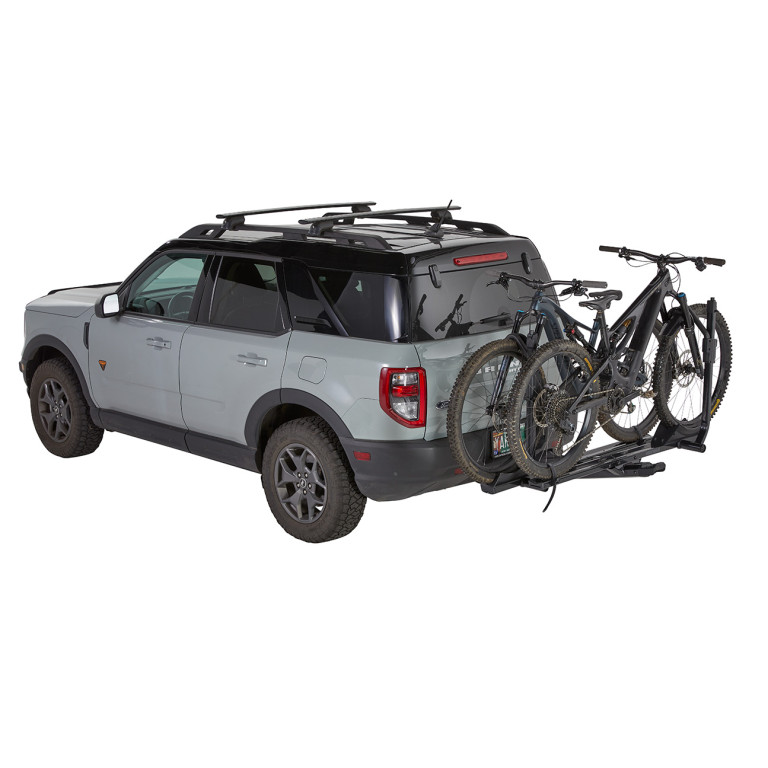 - Convenient 3-Position tilt lowers to allow boot/tub access with bikes loaded, and folds flat against the car with bikes unloaded