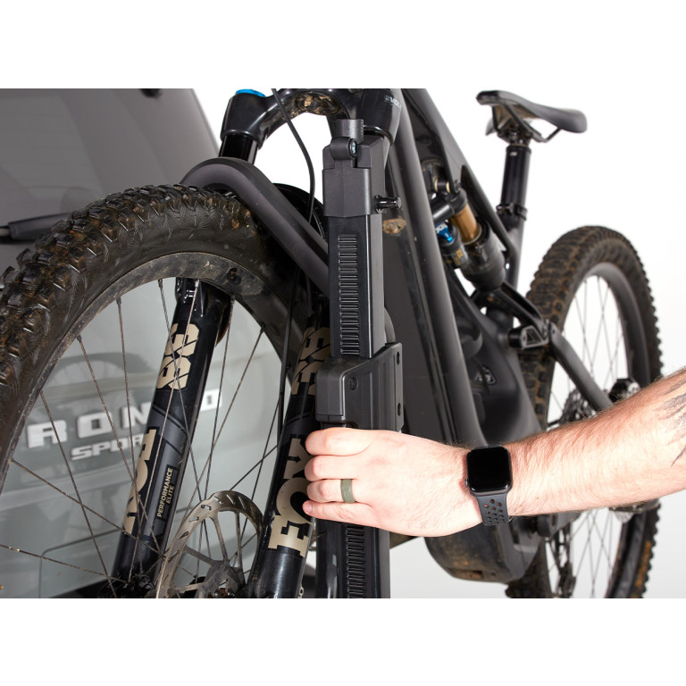 - StrongArm™ hook secures bike at wheels, protecting painted surfaces and carbon frames