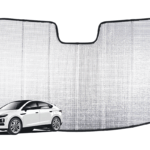Our custom sun shades have a triple laminate construction with a foam core centre that acts as an insulator, a reflective layer on the outside, soft felt backing on the inner side and are finished with a stylish black binding. The unique internal foam core provides superior insulation as well as preventing the sun shade from falling when in use. Our custom sun shades also retain its shape and rigidity after use. No more flimsy, wrinkled looking sun shades.